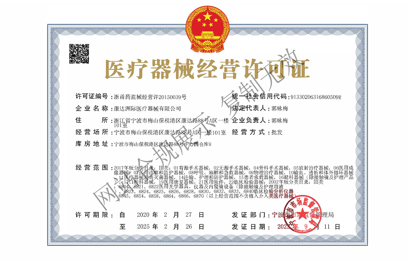 浙甬藥監(jiān)械經(jīng)營(yíng)許20150039號(hào)